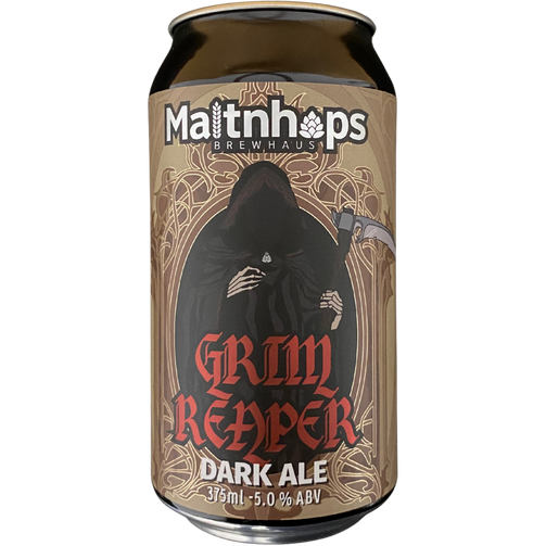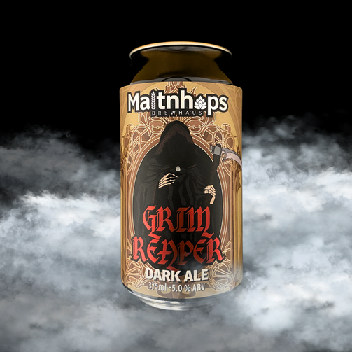 The Grim Reaper Dark Ale guides your tastebuds into the dark abyss. With every sip, you're drawn deeper into its mysterious depths, where hints of chocolate mingle with a subtle bitterness on a roasted malt base. Whether enjoyed around a flickering fire or amidst the silence of solitude, this dark ale delivers robust and intense flavours with an approachable 5% ABV.